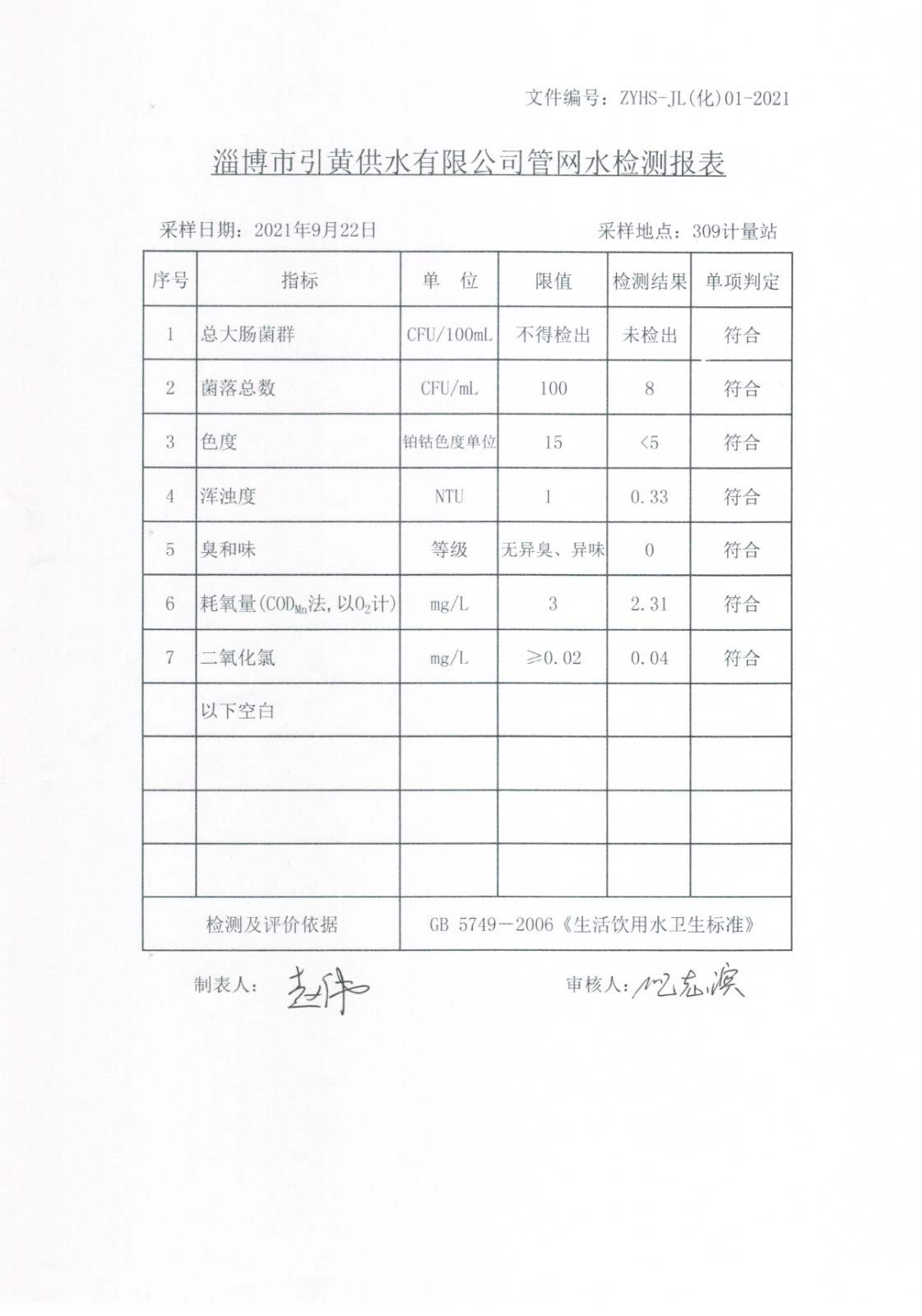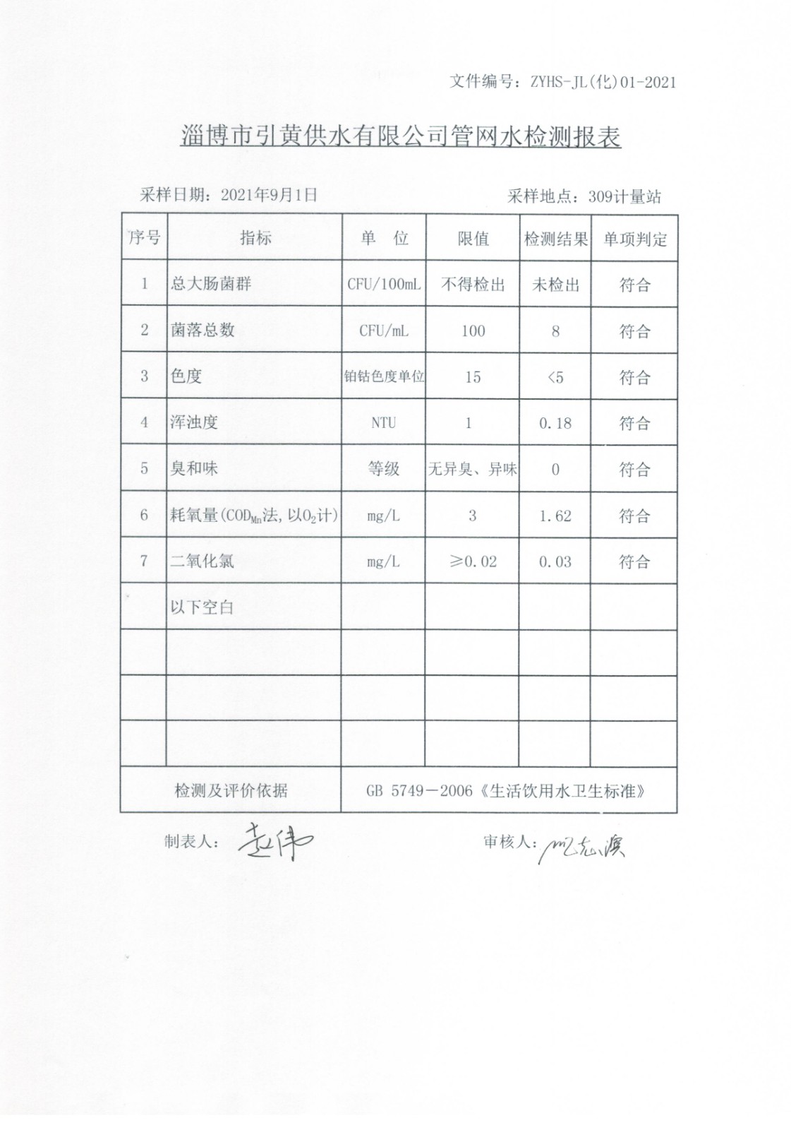 2021年9月水質(zhì)月檢公示 點(diǎn)擊數(shù):0次 發(fā)布時(shí)間:2021-10-14 11:03:55 9月上管網(wǎng)水半月檢7項(xiàng)檢測匯總表9月下管網(wǎng)水半月檢7項(xiàng)檢測匯總表南定出廠儷園小區(qū)灃水出廠生活飲用水-配水廠出廠水(全分析)生活飲用水-周村計(jì)量站水世紀(jì)花園生活飲用水-齊魯進(jìn)水四砂生活區(qū)體育中心